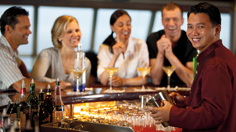 Holland America propose de nombreuses options de bars et salons où se retrouver autour d’un verre.