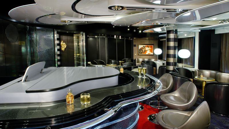 Pour les amateurs de whisky, c'est vraiment là où il faut aller. En effet plus de 120 bouteilles de whisky sont exposées, et les passagers pourront goûter une sélection des whiskys les plus rares venant du monde entier.