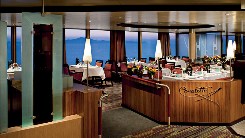 En Italie, il n'y a rien de plus important que de se réunir pour célébrer les joies de la bonne chère. C'est l'inspiration de notre restaurant italien à bord, Canaletto. Savourez d'incroyables classiques italiens comme le poulet braisé cacciatore al forno, le branzino ai ferri ou les raviolis aux crevettes à l'ail. Et pour le dessert : tiramisù, cannoli alla Siciliana, gelato, et plus encore. Y compris des pâtes fraîchement préparées chaque jour. Buon Appetito !
