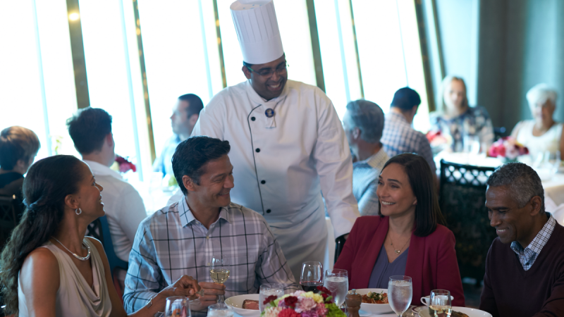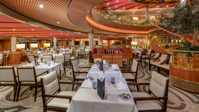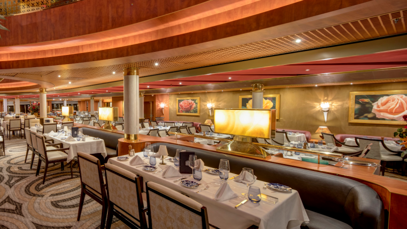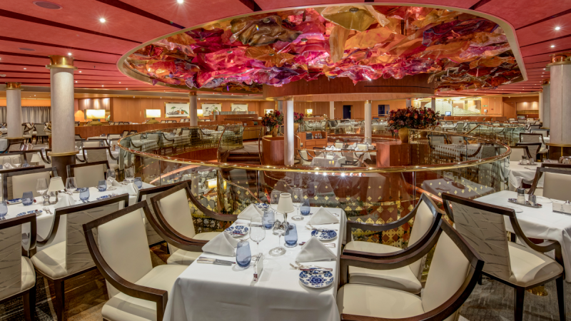 Pour un petit-déjeuner élégant, un déjeuner tranquille ou un dîner inoubliable composé de plusieurs plats, ce restaurant est votre destination. Dans les coulisses, notre Conseil culinaire®, une équipe d'élite composée de chefs de renommée mondiale, et nos talentueux chefs exécutifs à bord ont travaillé pour que chaque plat atteigne la perfection. Pour le dîner, choisissez parmi les classiques tels que la longe d'agneau désossée en croûte, le poulet rôti au romarin, la cuisine d'inspiration régionale ou bien des plats végétariens préparés avec art. Enrichissez votre voyage culinaire avec une vaste sélection de vins, choisis avec soin par James Suckling, un des plus importants et des plus influents, critique en vins.