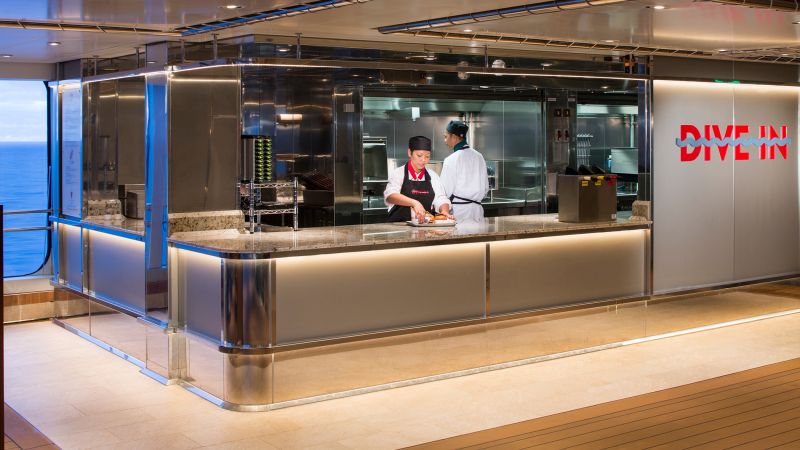 Le Dive-In est le reflet de la cuisine américaine telle qu'elle existe aux États-Unis. Vous pourrez apprécier un superbe hamburger accompagné d'une sauce dont la recette secrète est concoctée par les cuisiniers de la compagnie, un hot-dog avec de délicieuses frites ou tout simplement des sandwichs comme savent les faire les américains.