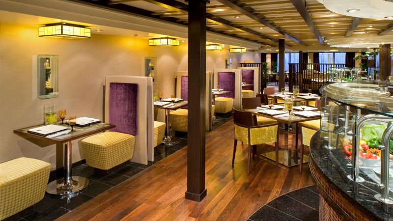 Pour un petit-déjeuner élégant, un déjeuner tranquille ou un dîner inoubliable composé de plusieurs plats, ce restaurant est votre destination. Dans les coulisses, notre Conseil culinaire®, une équipe d'élite composée de chefs de renommée mondiale, et nos talentueux chefs exécutifs à bord ont travaillé pour que chaque plat atteigne la perfection. Pour le dîner, choisissez parmi les classiques tels que la longe d'agneau désossée en croûte, le poulet rôti au romarin, la cuisine d'inspiration régionale ou bien des plats végétariens préparés avec art. Enrichissez votre voyage culinaire avec une vaste sélection de vins, choisis avec soin par James Suckling, un des plus importants et des plus influents, critique en vins.