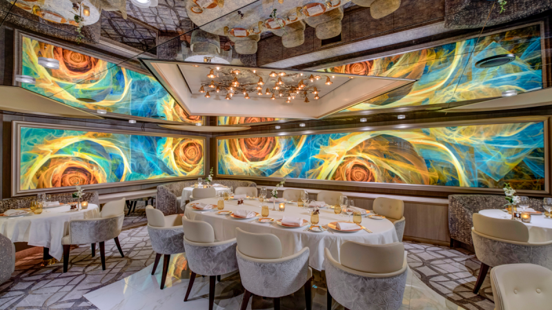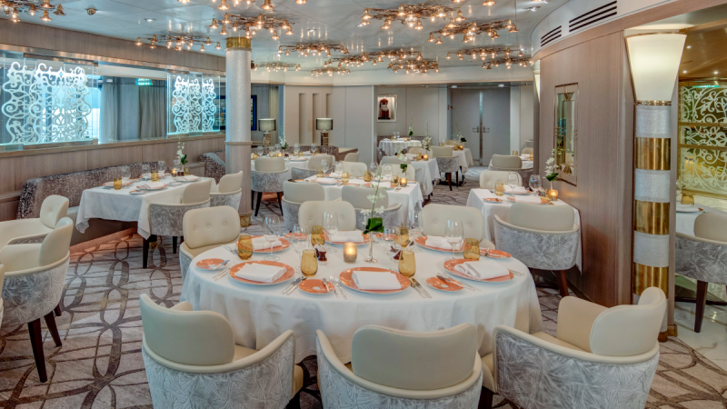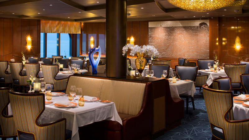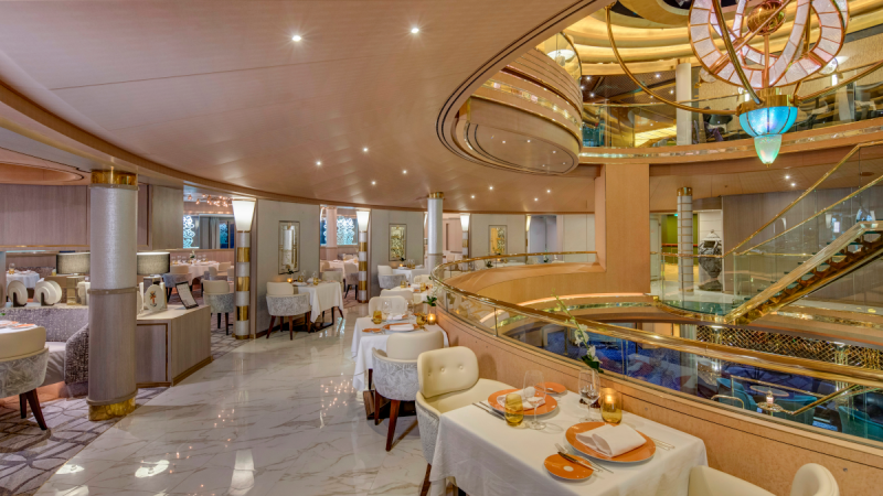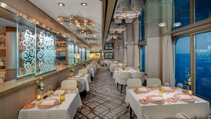 Pour un petit-déjeuner élégant, un déjeuner tranquille ou un dîner inoubliable composé de plusieurs plats, ce restaurant est votre destination. Dans les coulisses, notre Conseil culinaire®, une équipe d'élite composée de chefs de renommée mondiale, et nos talentueux chefs exécutifs à bord ont travaillé pour que chaque plat atteigne la perfection. Pour le dîner, choisissez parmi les classiques tels que la longe d'agneau désossée en croûte, le poulet rôti au romarin, la cuisine d'inspiration régionale ou bien des plats végétariens préparés avec art. Enrichissez votre voyage culinaire avec une vaste sélection de vins, choisis avec soin par James Suckling, un des plus importants et des plus influents, critique en vins.