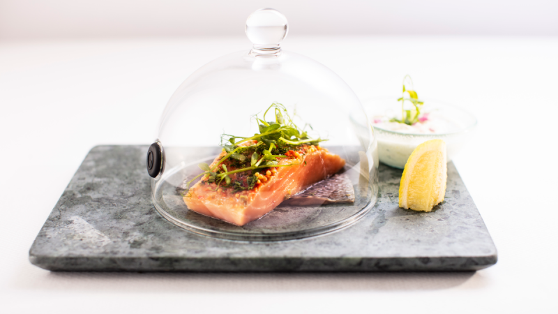 Au menu du saumon d'Alaska, du boeuf élevé dans l'état de Washington ou encore du homard pêché dans le Pacifique Nord, le tout dirigé par le chef du conseil culinaire David Burke.