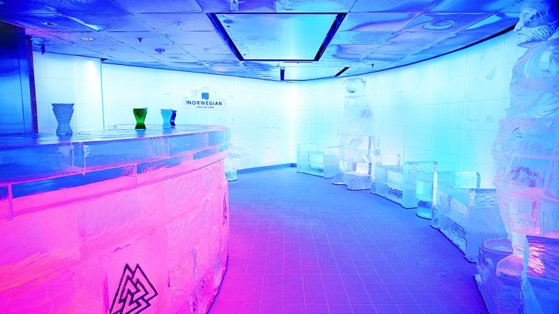 Ce bar polaire a une température de -8°C. Inspiré des hôtels de glace de Scandinavie, les murs, chaises et verres sont en glace ! Une expérience qui sort de l’ordinaire à bord de navires de croisières !