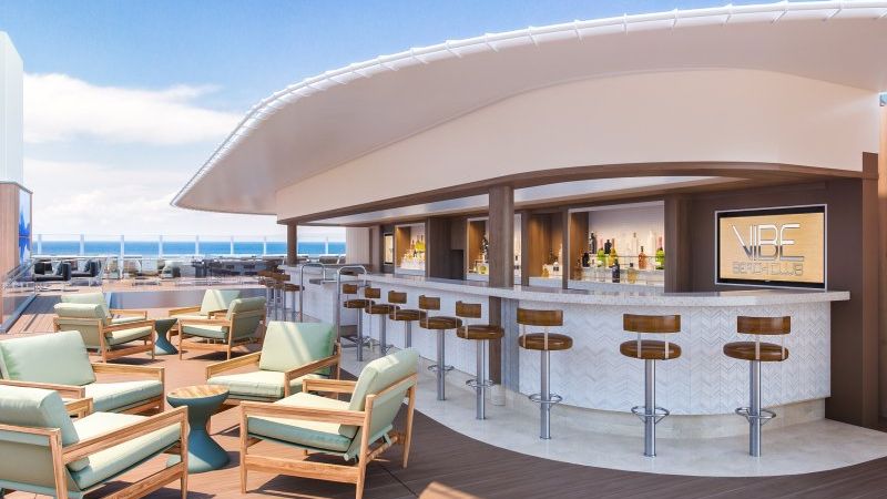 Exclusivement réservé aux passagers de plus de 18 ans, le Beach Club Vibe garantit calme et sérénité, tout en offrant une vue imprenable sur l’horizon, depuis le grand jacuzzi ou les chaises longues. On y sert des cocktails et boissons fraiches (ou non).