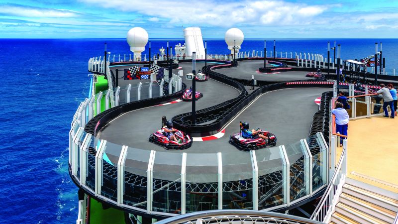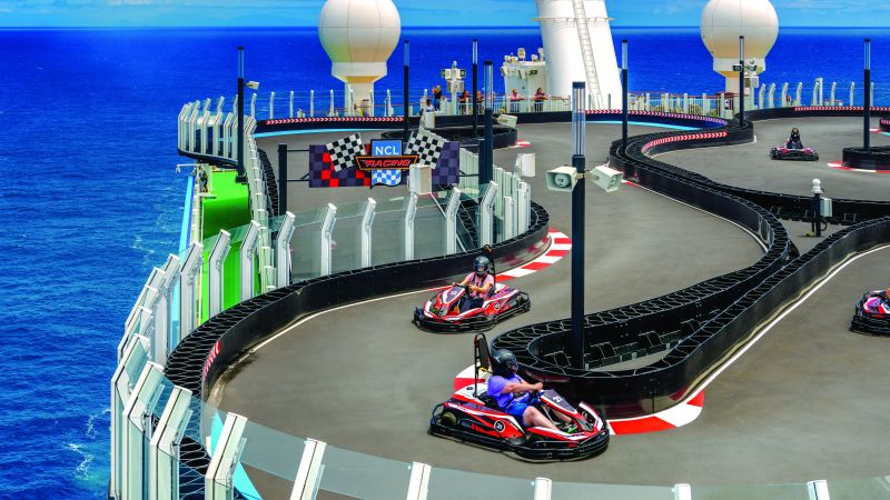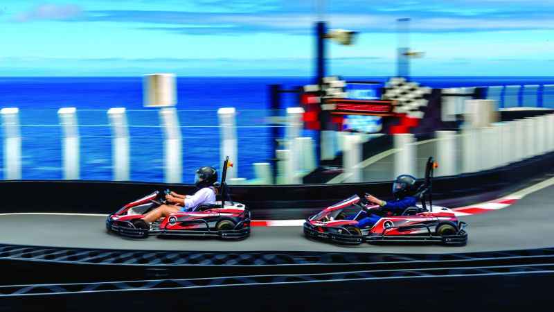 Unique en mer ! Une piste de karting avec karts électriques et sons de Formule 1 propose aux passagers des Norwegian Bliss, Norwegian Encore, du Norwegian Joy et du Norwegian Prima de faire quelques tours de piste, sur deux niveaux, au-dessus de l’océan ! Une expérience à ne pas manquer !