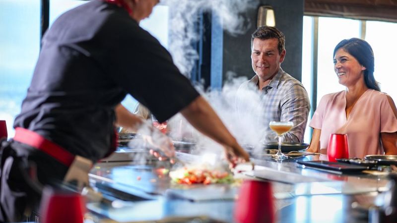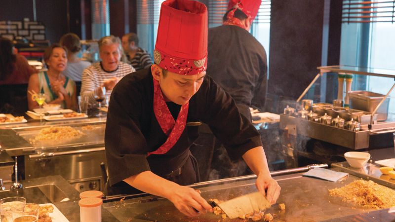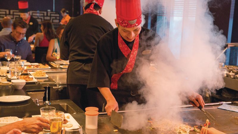 Le Teppanyaki est spectaculaire ! Authentique restaurant Hibachi japonais, on y déguste les must de la cuisine nippone, préparés devant nos yeux par un chef, ou plutôt un artiste, qui jongle avec ses ustensiles de cuisine pour régaler les papilles, et pour le plaisir des yeux.