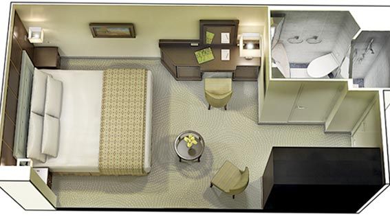 Les cabines intérieures, modernes et contemporaines, sont agréablement meublées et ingénieusement agencées pour optimiser l’espace.