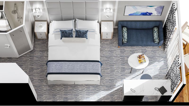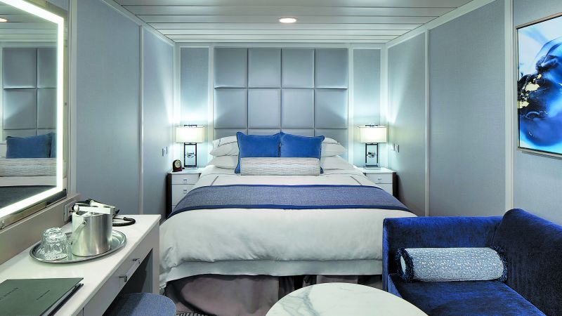 Des meubles faits sur mesure, des finitions en pierre exotique, des têtes de lit rembourrées et un éclairage chic ne sont que quelques-unes des améliorations apportées à ces cabines de 20 m2 qui disposent également d'une véranda privée en teck pour apprécier les océans aux panoramas toujours changeants. Les commodités de chaque cabine comprennent un bureau, un mini-bar réfrigéré, une table de petit-déjeuner et un coin salon spacieux.