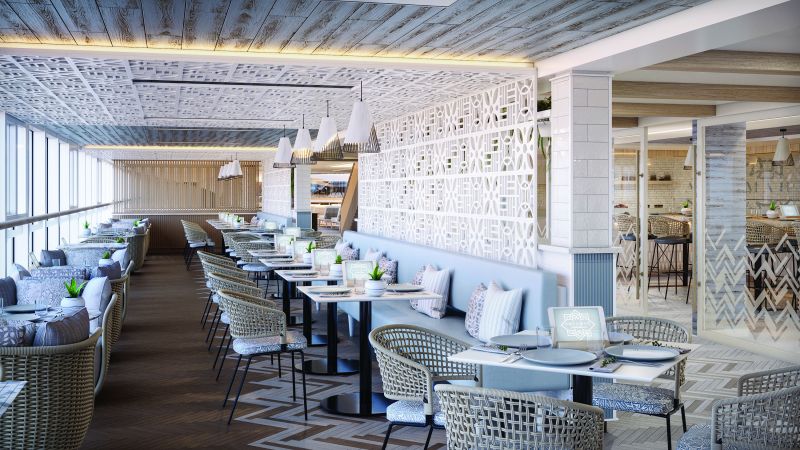 Le Waves Grill accueille les passagers pour le déjeuner et toute l’après-midi, sans réservation.