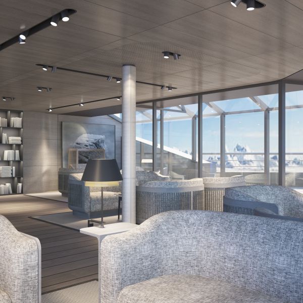 Doté d’une salle de conférence pour en apprendre le maximum sur les régions visitées, et de 2 salles d’embarquement pour monter à bord des Zodiacs et partir en expédition, le navire a aussi un théâtre avec des technologies son et lumière dernier cri. Les passagers pourront se détendre dans un élégant salon : un coin salon de thé et bar avec animations musicales, et même un espace « fumoir ». Un pont promenade faisant le tour complet du navire offre aux passagers des vues imprenables sur les paysages alentour, et l’occasion de repérer baleines et autres créatures marines. Une piscine, un spa et l’incontournable boutique de bord complètent les équipements de ce navire à la pointe de la technologie.
