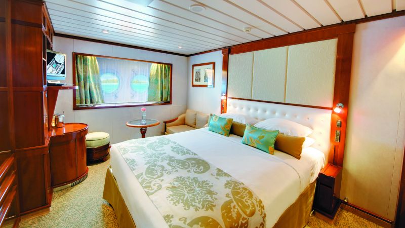 Les 37 cabines de la catégorie E offrent une vue permanente à travers une fenêtre sabord qui ne s'ouvre pas sur la nature généreuse et luxuriante des îles paradisiaques qui vous attendent.