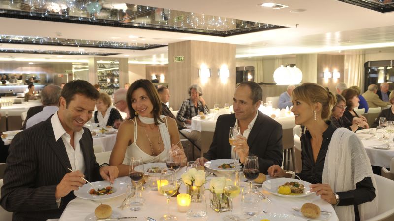 Comme à bord de tous les navires de la flotte Ponant, la gastronomie à bord des Sisterships suit le concept Ducasse Conseil mis en place par la compagnie depuis début 2016. Les Sisterships proposent aux passagers un restaurant gastronomique où les plats sont servis à table. Pour le déjeuner les menus sont d'inspiration "brasserie française" alors que pour le dîner, c'est la grande gastronomie française qui prend le relai et le restaurant grill, plus décontracté, accueille les passagers pour les 3 repas de la journée. Le restaurant offre un service en extérieur d'une capacité de 60 personnes.
