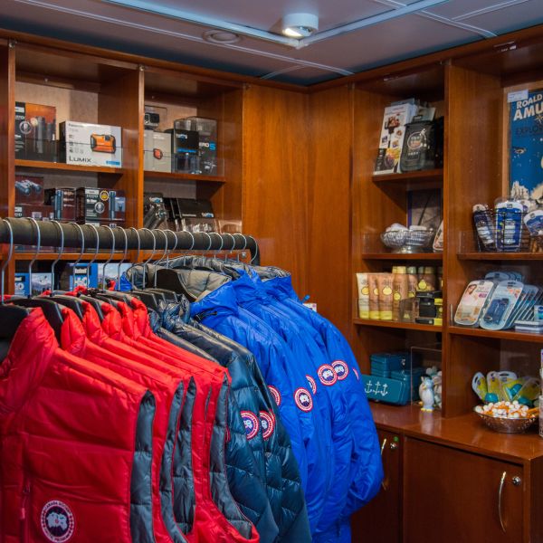 Au pont 4, la Polar Boutique propose aux passagers un grand choix de souvenirs, à offrir au retour, ou tout simplement pour prolonger la magie d’une expédition polaire. Matériel d’expédition, vêtements chauds, pantalons imperméables, gants… Il y a de quoi parfaire sa tenue du parfait explorateur.