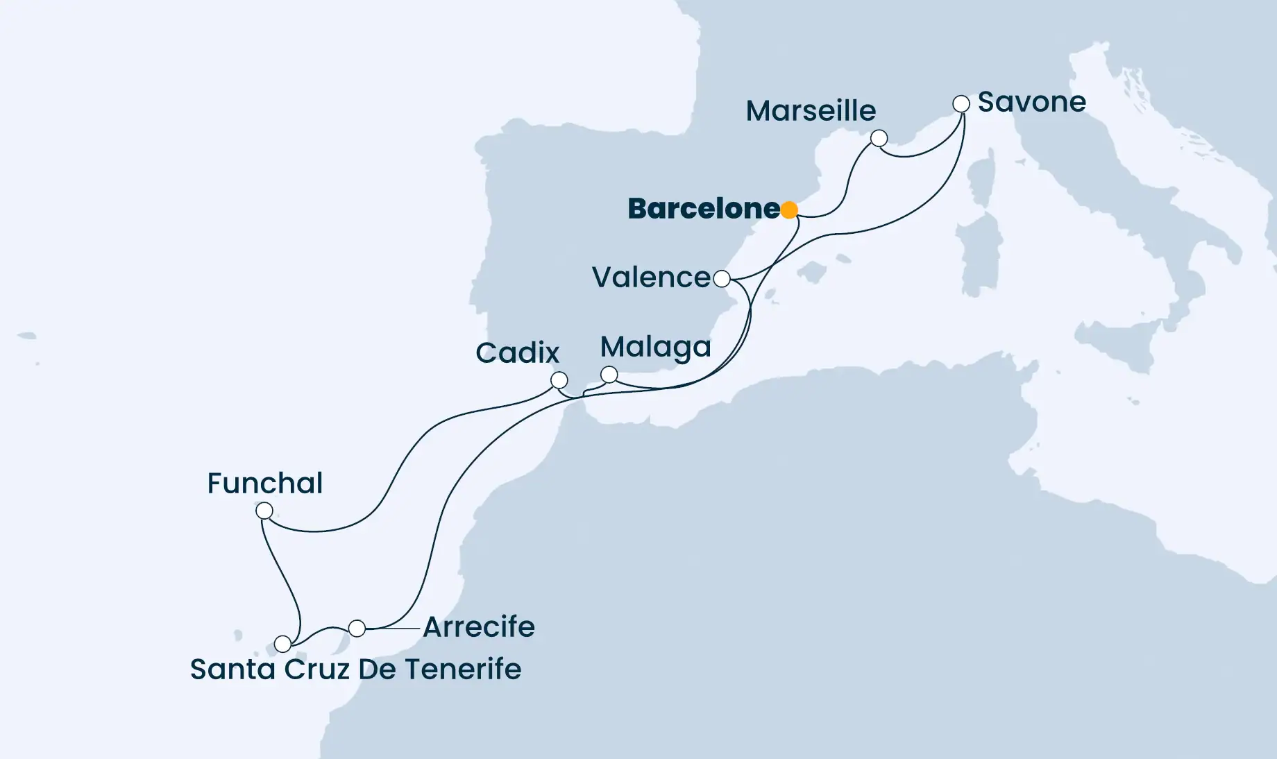 La Méditerranée et Îles de l'Atlantique, à partir de Barcelone