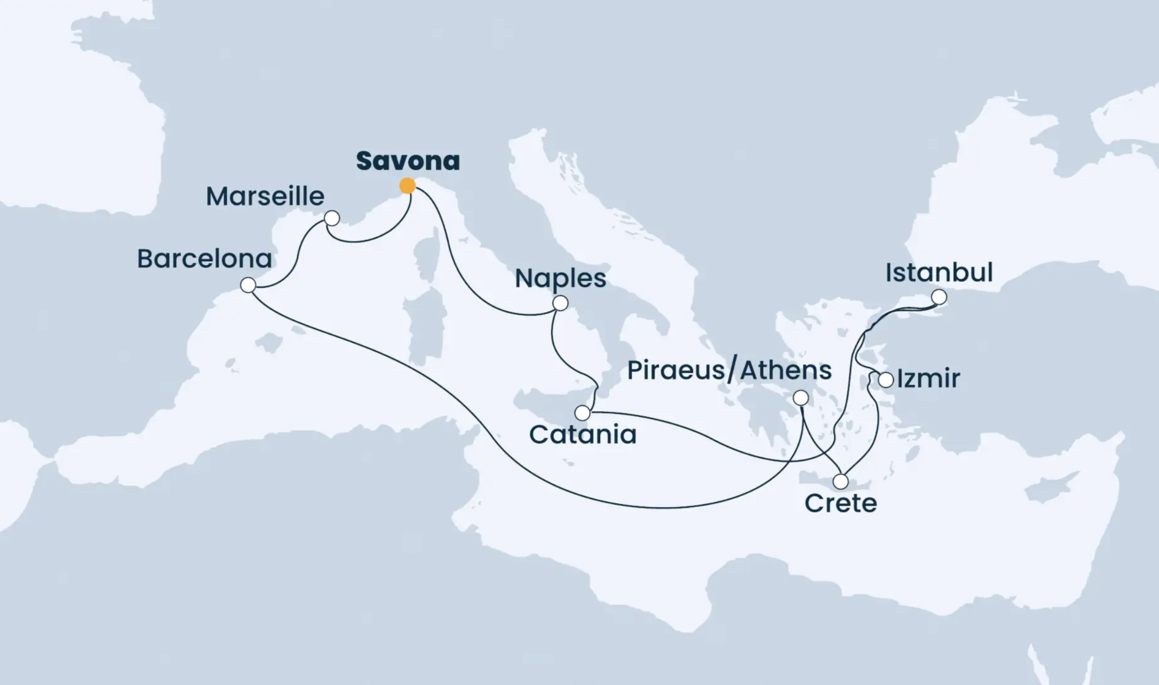 Méditerranée : France, Italie, Turquie et Grèce, à partir de Savone