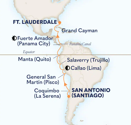 Toutes les escales et les amplitudes horaires indiquées sont données à titre indicatif et sont susceptibles d’être modifiées par les compagnies maritimes à tout moment, avant le départ ou pendant la croisière.