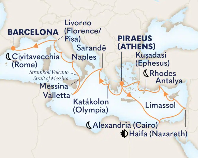 Toutes les escales et les amplitudes horaires indiquées sont données à titre indicatif et sont susceptibles d’être modifiées par les compagnies maritimes à tout moment, avant le départ ou pendant la croisière.