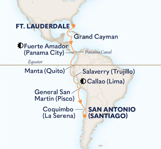 Toutes les escales et les amplitudes horaires indiquées sont données à titre indicatif et sont susceptibles d’être modifiées par les compagnies maritimes à tout moment, avant le départ ou pendant la croisière.