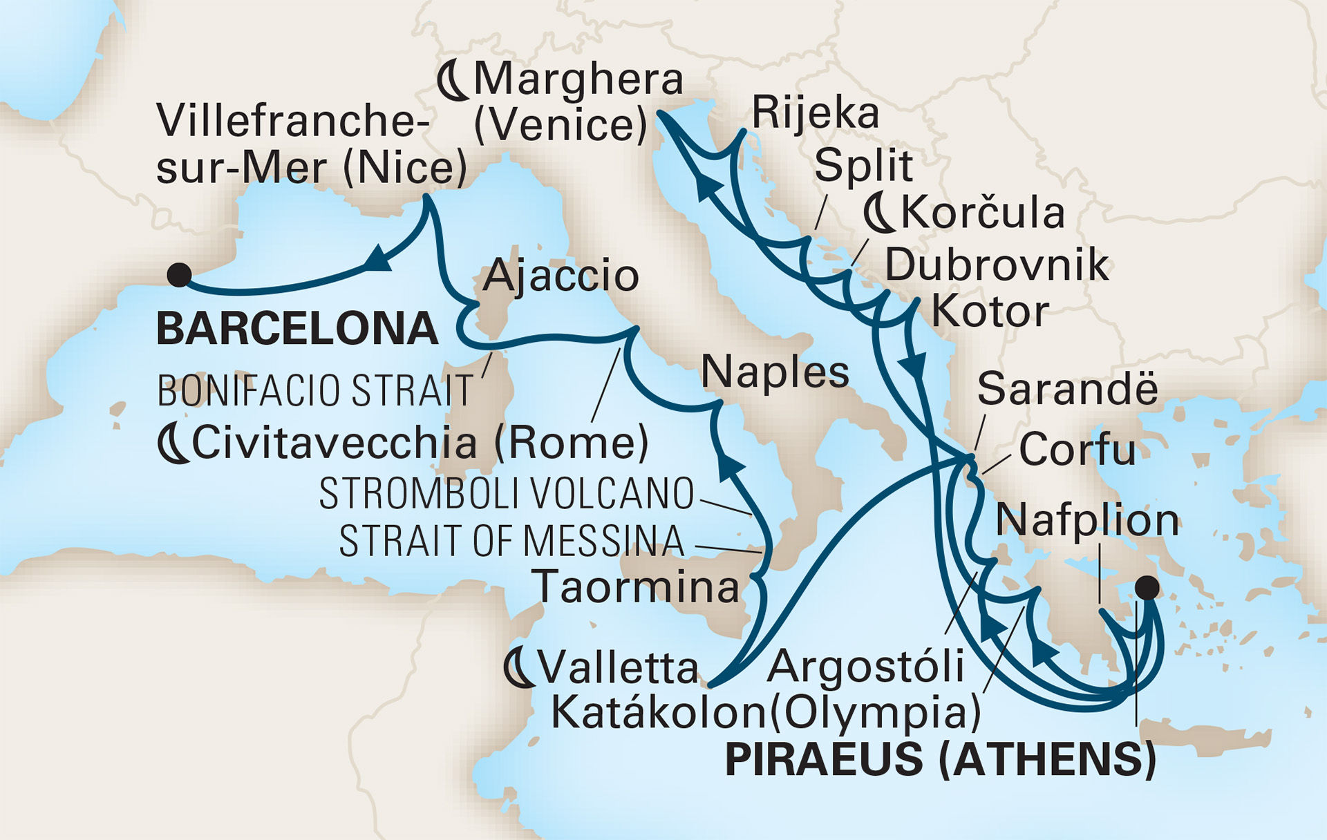 Toutes les escales et les amplitudes horaires indiquées sont données à titre indicatif et sont susceptibles d’être modifiées par les compagnies maritimes à tout moment, avant le départ ou pendant la croisière.