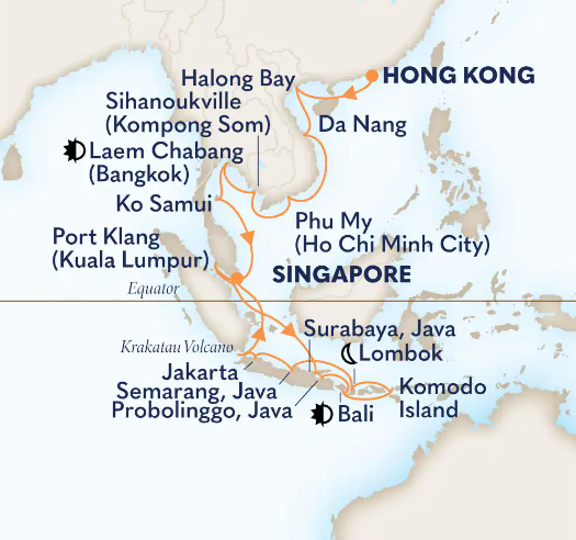 Toutes les escales et les amplitudes horaires indiquées sont données à titre indicatif et sont susceptibles d’être modifiées par les compagnies maritimes à tout moment, avant le départ ou pendant la croisière.