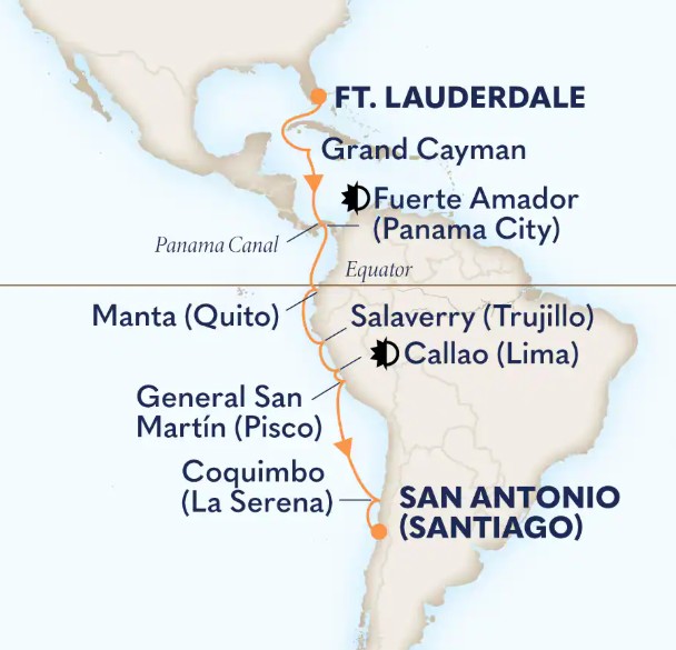Toutes les escales et les amplitudes horaires indiquées sont données à titre indicatif et sont susceptibles d’être modifiées par les compagnies maritimes à tout moment, avant le départ ou pendant la croisière.