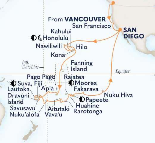 Toutes les escales et les amplitudes horaires indiquées sont données à titre indicatif et sont susceptibles d’être modifiées par les compagnies maritimes à tout moment, avant le départ ou pendant la croisière.