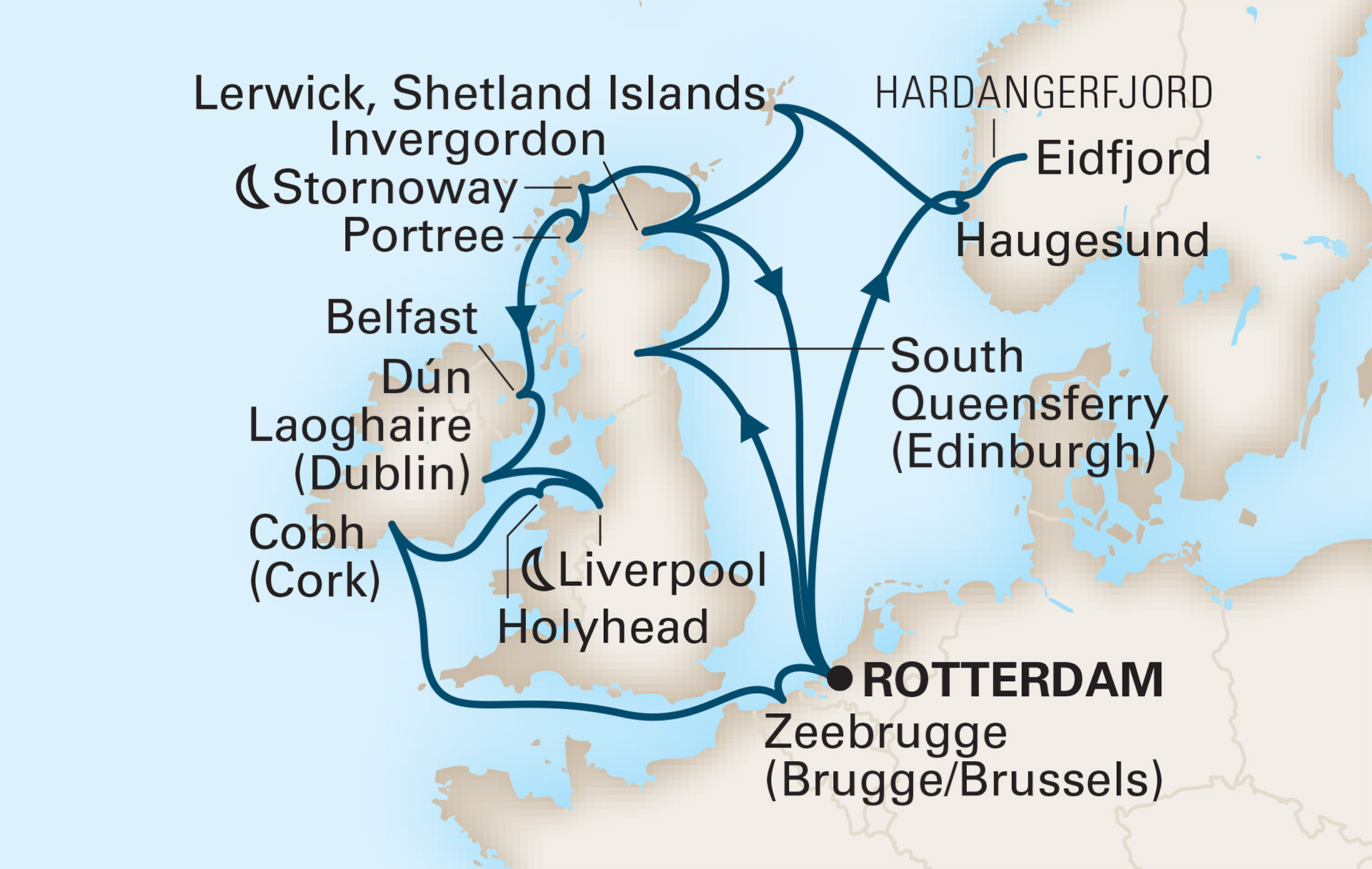 Une croisière inoubliable au départ de Rotterdam qui visite les îles de rêve de l'Écosse, les fjords envoûtants de la Norvège, les villes emblématiques du Royaume-Uni pendant 21 jours magiques.