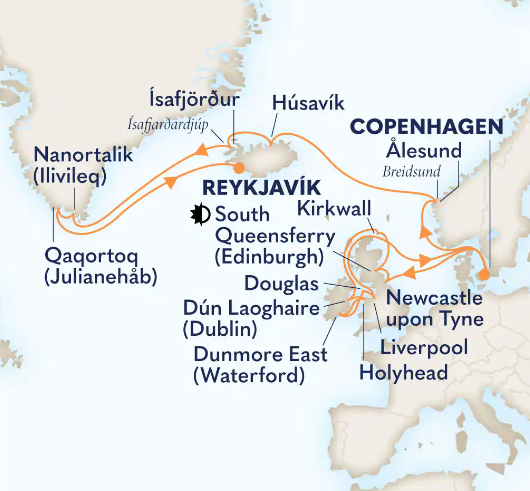 Départ : Copenhague - Danemark / Arrivée : Reykjavik - Islande