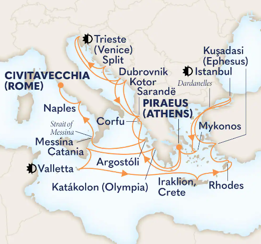 Toutes les escales et les amplitudes horaires indiquées sont données à titre indicatif et sont susceptibles d’être modifiées par les compagnies maritimes à tout moment, avant le départ ou pendant la croisière.