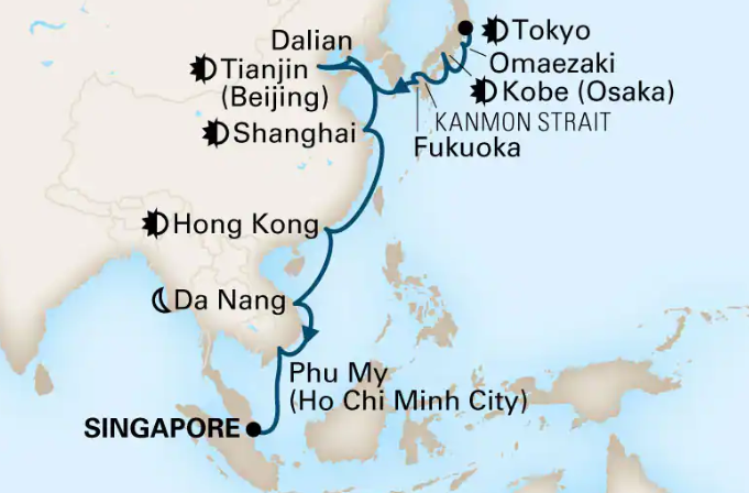 Toutes les escales et les amplitudes horaires indiquées sont données à titre indicatif et sont susceptibles d’être modifiées par les compagnies maritimes à tout moment, avant le départ ou pendant la croisière.