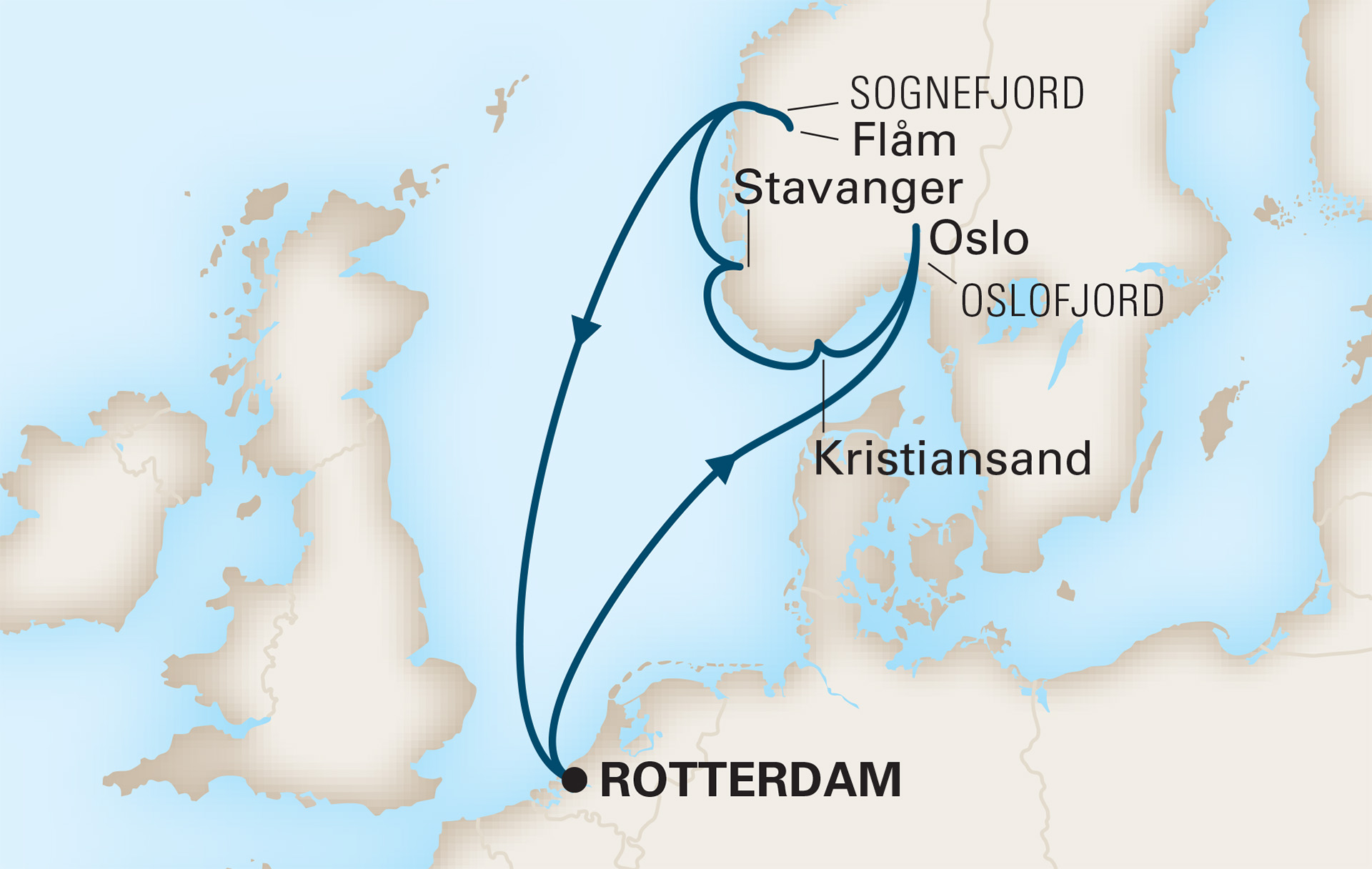 Un voyage aller-retour de rêve depuis Rotterdam à travers les fjords et les villes spectaculaires de Norvège. Croisière panoramique Oslofjord & Sognefjord. Explorez Oslo, la maison du peintre Edvard Munch.