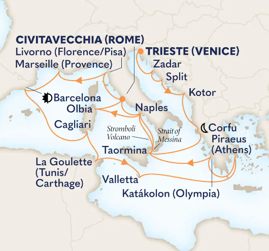 Toutes les escales et les amplitudes horaires indiquées sont données à titre indicatif et sont susceptibles d’être modifiées par les compagnies maritimes à tout moment, avant le départ ou pendant la croisière.