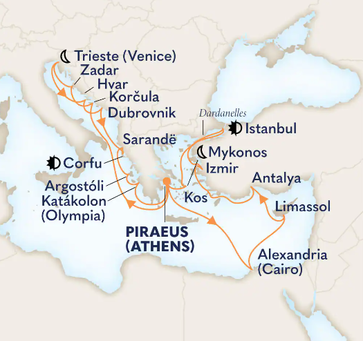 Toutes les escales et les amplitudes horaires indiquées sont données à titre indicatif et sont susceptibles d’être modifiées par les compagnies maritimes à tout moment, avant le départ ou pendant la croisière.
