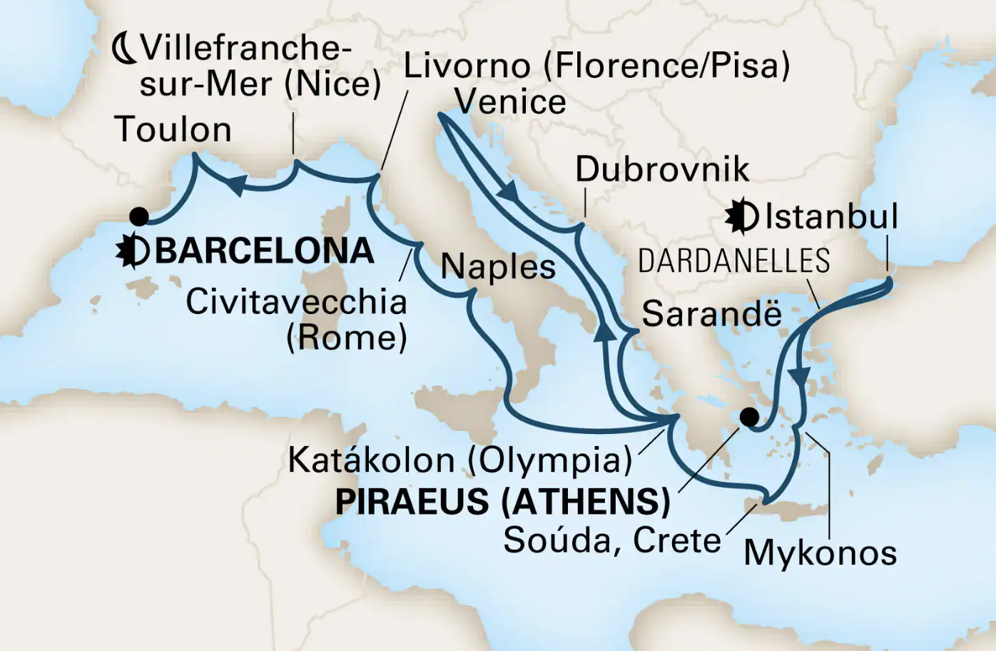 Méditerranée, à partir d'Athènes (Le Pirée) à Barcelone