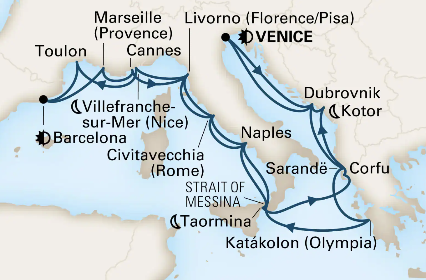 Toutes les escales et les amplitudes horaires indiquées sont données à titre indicatif et sont susceptibles d’être modifiées par les compagnies maritimes à tout moment, avant le départ ou pendant la croisière.