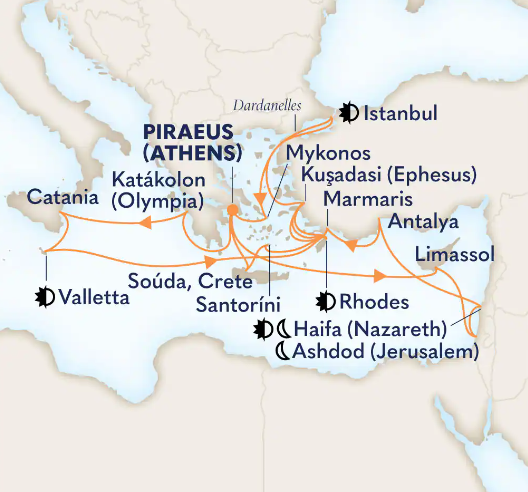 Toutes les escales et les amplitudes horaires indiquées sont données à titre indicatif et sont susceptibles d’être modifiées par les compagnies maritimes à tout moment, avant le départ ou pendant la croisière.