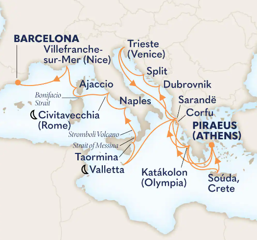 Toutes les escales et les amplitudes horaires indiquées sont données à titre indicatif et sont susceptibles d’être modifiées par les compagnies maritimes à tout moment, avant le départ ou pendant la croisière.