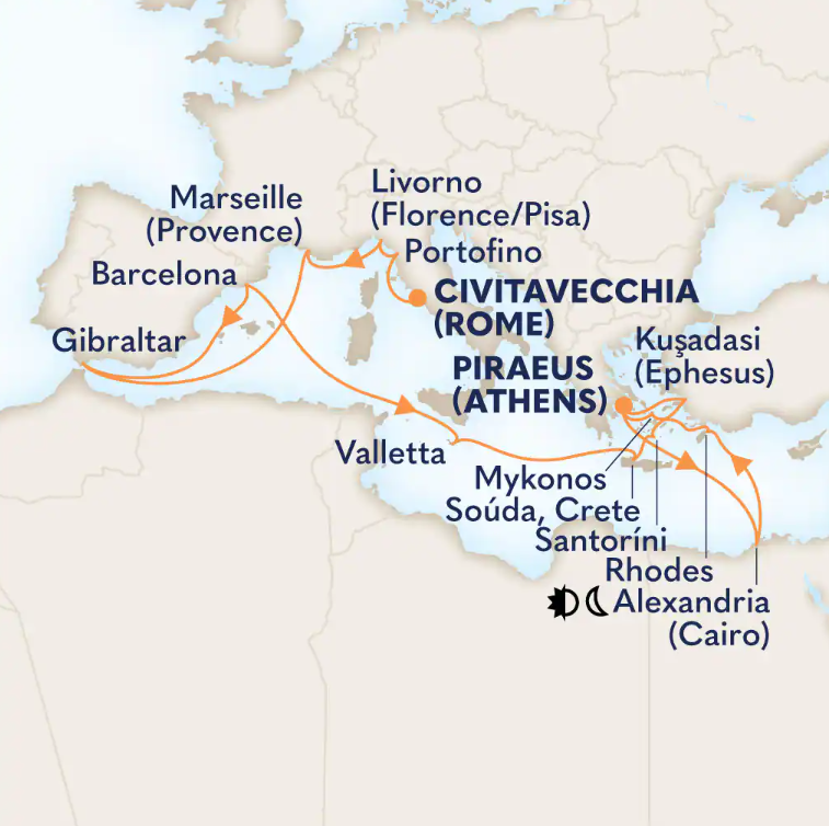 Départ : Rome (Civitavecchia) - Italie / Arrivée : Athènes (Le Pirée) - Grèce