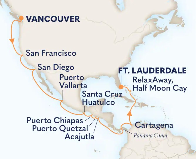 Toutes les escales et les amplitudes horaires indiquées sont données à titre indicatif et sont susceptibles d’être modifiées par les compagnies maritimes à tout moment, avant le départ ou pendant la croisière.