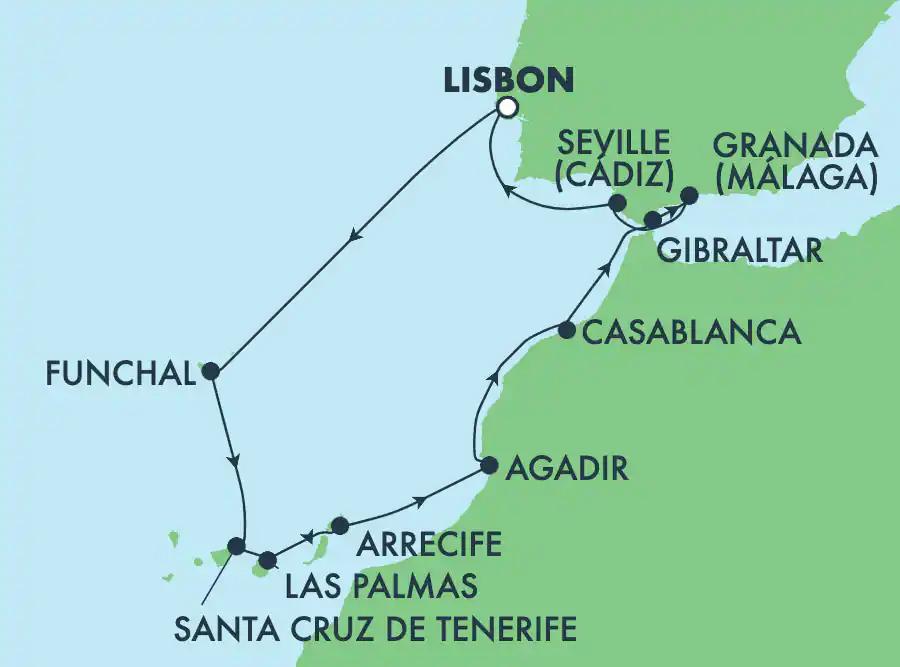 Europe : Espagne, Maroc et les Îles Canaries, à partir de Lisbonne