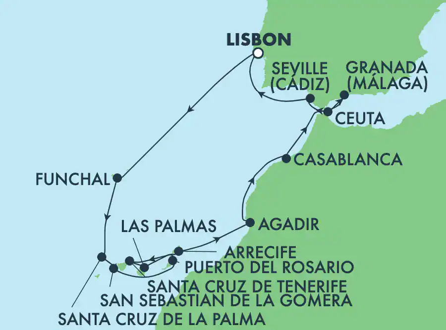 Europe : Espagne, Maroc et les Îles Canaries, à partir de Lisbonne
