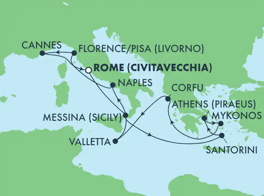 Îles Grecques et Italie, à partir de Civitavecchia (Rome)