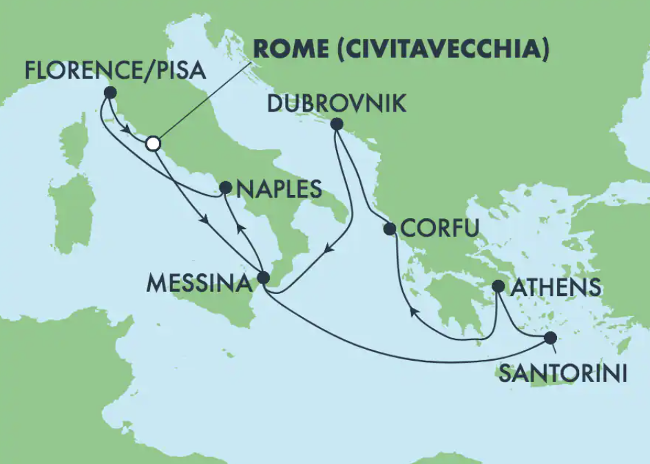 Îles Grecques et Italie : Santorin, Athènes et Florence, à partir de Rome (Civitavecchia)