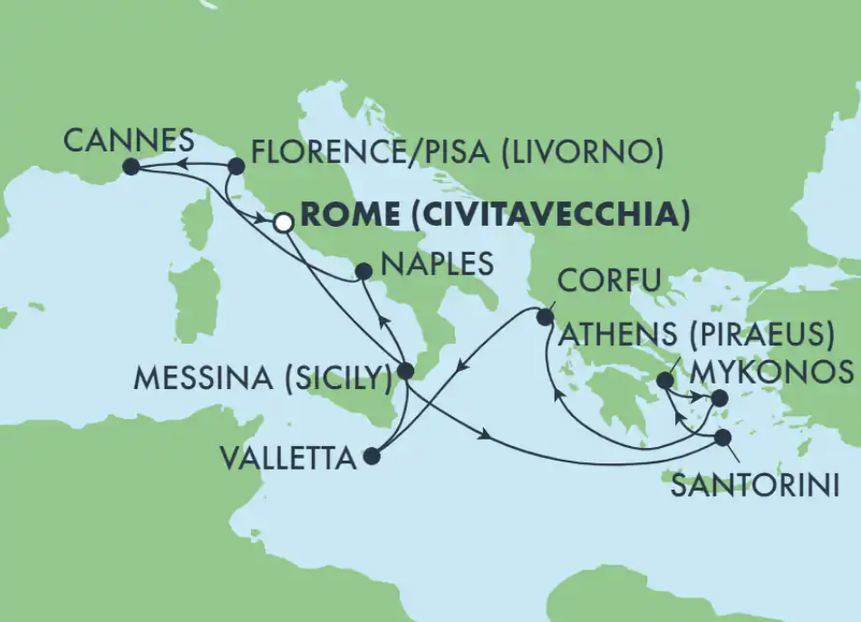 Îles Grecques et Italie : Santorin, Athènes et Florence, à partir de Rome (Civitavecchia)