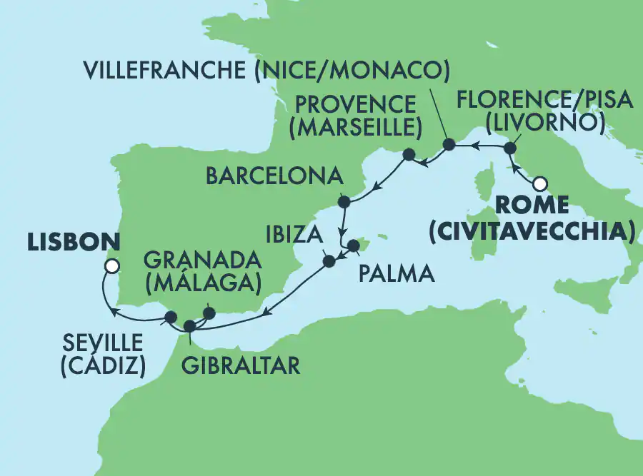 La Méditerranée, de Civitavecchia (Rome) à Lisbonne - 20128822