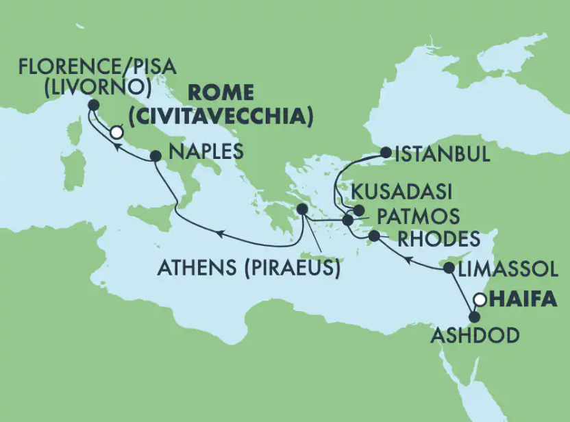 La Méditerranée, de Haïfa (Israël) à Civitavecchia (Rome)