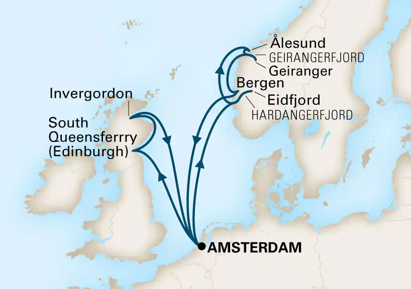 Royaume-Uni et Norvège, à partir d'Amsterdam