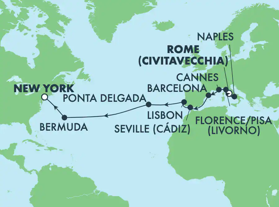 Transatlantique : Italie, France et Espagne, de Civitavecchia (Rome) à New York